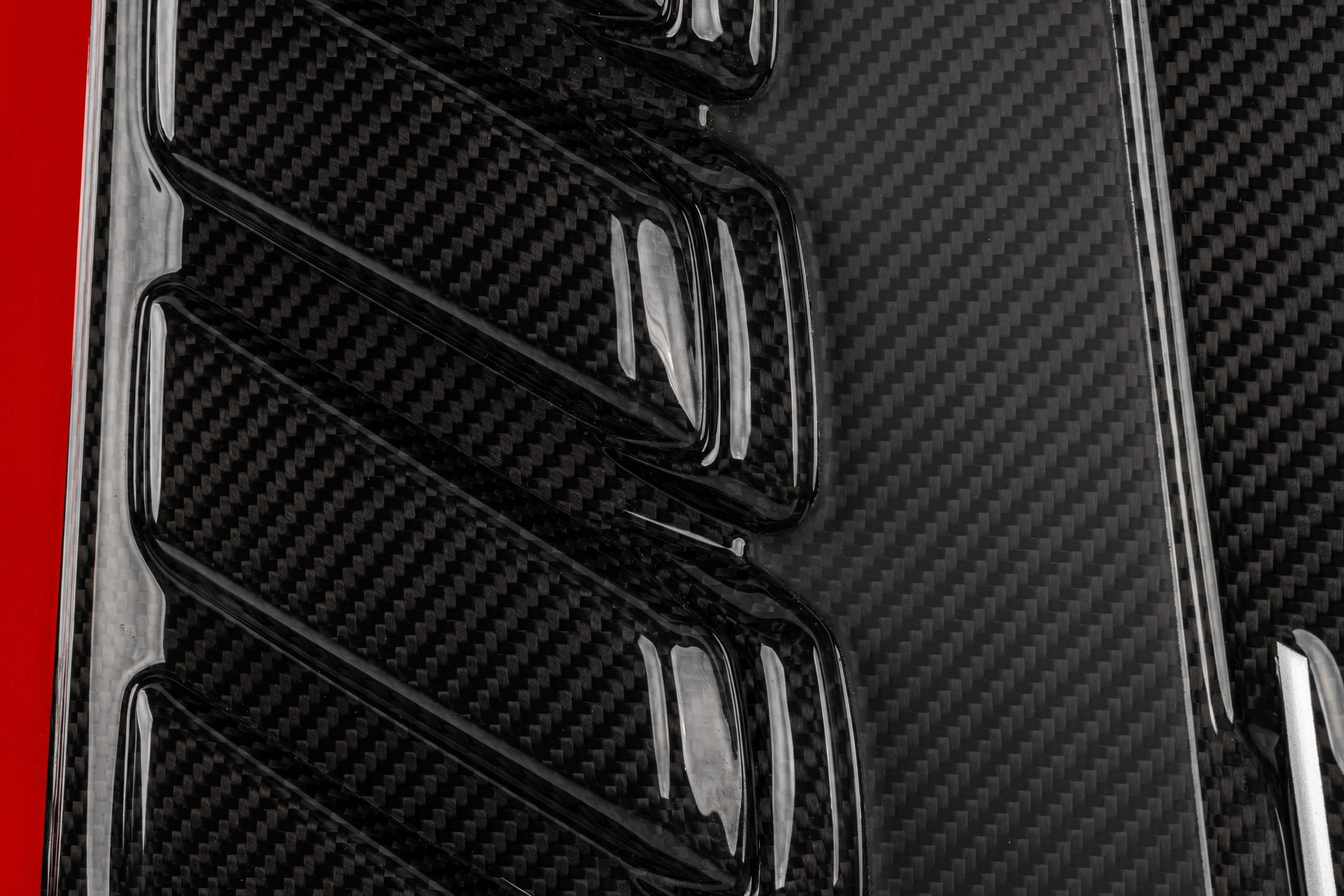2.9T、3.0T、4.0TエンジンはAudi、Bentley、Lamborghini、Porsche、VWなど多くのブランドで共通のエンジンカバープラットフォームを採用していますが、純正カバーはシンプルすぎてエンジンの魅力を十分に引き出せていません。APRのカーボンファイバーエンジンカバーは、光沢とマットのカーボンツイルを組み合わせたツートーン仕上げに、ホワイトラインとレッドストライプを配したエキゾチックなデザインで外観を大幅に向上。純正の遮音材を取り外すことで、ターボ付きV6/V8の迫力あるサウンドも際立ちます。工具不要のプラグ&プレイ設計で簡単装着でき、純正比で軽量化も実現。APRカーボンファイバーインテークシステムとの組み合わせで、エンジンルームの完成度をさらに高めます。