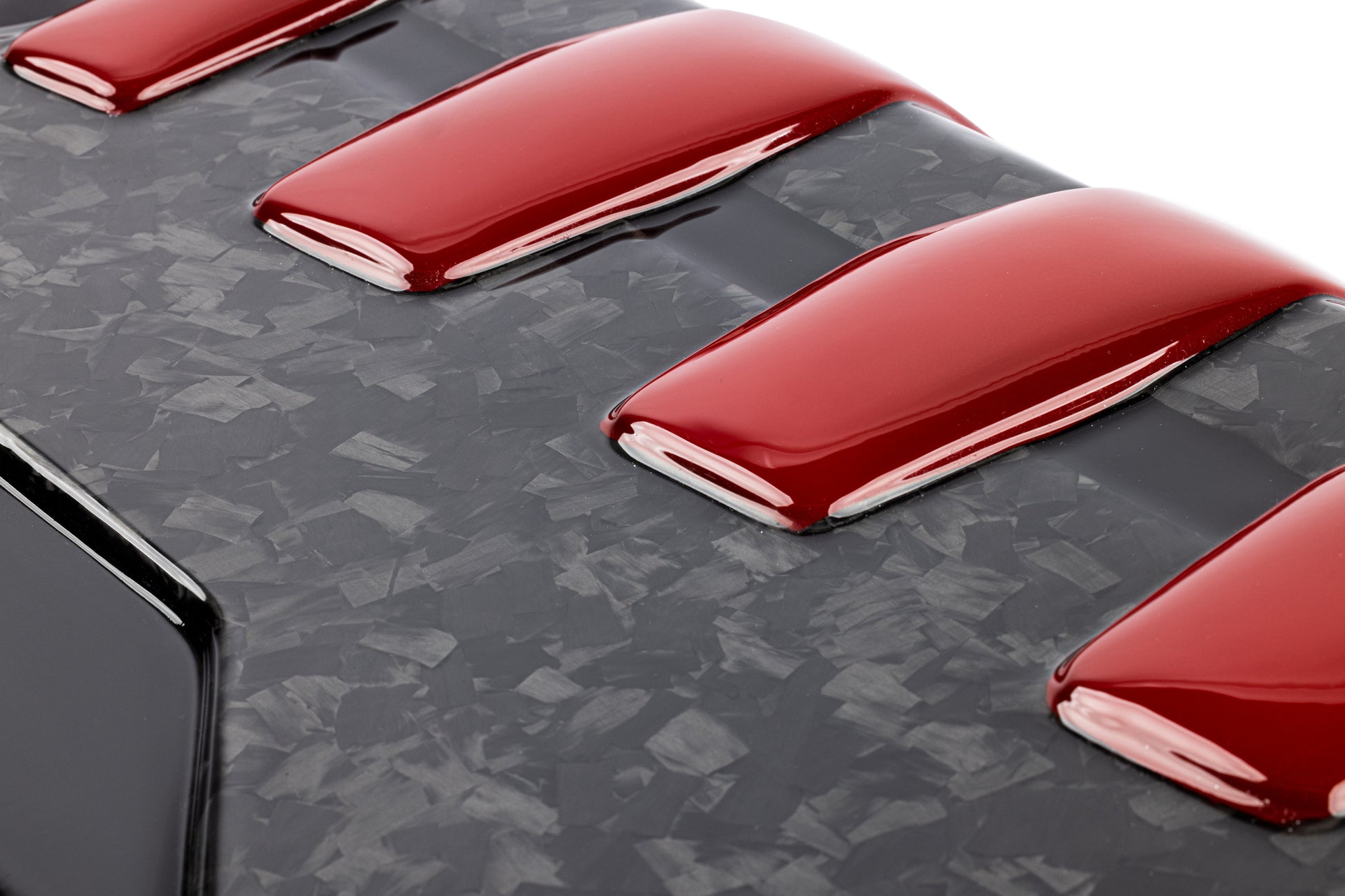 2.5T EA855.2エンジン用のカーボンファイバーエンジンカバーは、カーボンファイバーアップグレードパッケージを選ばない場合に装着されるプラスチック製カバーに代わる高品質な交換品です。グロスカーボンファイバー・ツイルとエキゾチックグロスフォージドカーボンファイバーの2タイプを用意し、純正の形状を保ちつつ、赤と黒のアクセントとAPRのロゴプレートが際立つデザインです。重量は純正比で32%軽減され、車両の重量配分と性能向上に寄与。工具不要のプラグ&プレイ方式で簡単に取り付けられ。