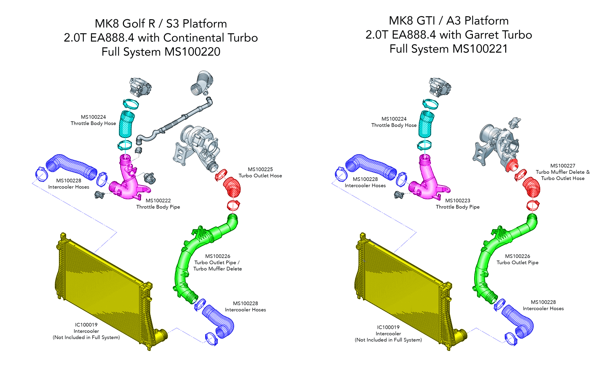 APRチャージパイプ&チャージホースシステムは、2.0T EA888 Gen 4エンジン向けにターボチャージャーからインタークーラー、さらにインタークーラーからスロットルボディまでの全経路を強化する包括的なアップグレードキットです。純正部品をすべて高性能パーツに置き換え、空気の流れを最適化して性能と信頼性を向上。5つの通常別売キットを一体化しています。チャージホースは耐膨張・耐裂性に優れたマルチプライシリコン構造で、内面はオイル劣化を防ぐフルオロシリコンコーティング。チャージパイプは強化アルミ製でブースト漏れを抑え、ターボマフラー撤去によりサウンドと性能を向上させます。各種ビレットアルミ製バングやTIG溶接ブラケットを備え、排ガス規制にも適合した高品質設計です。
