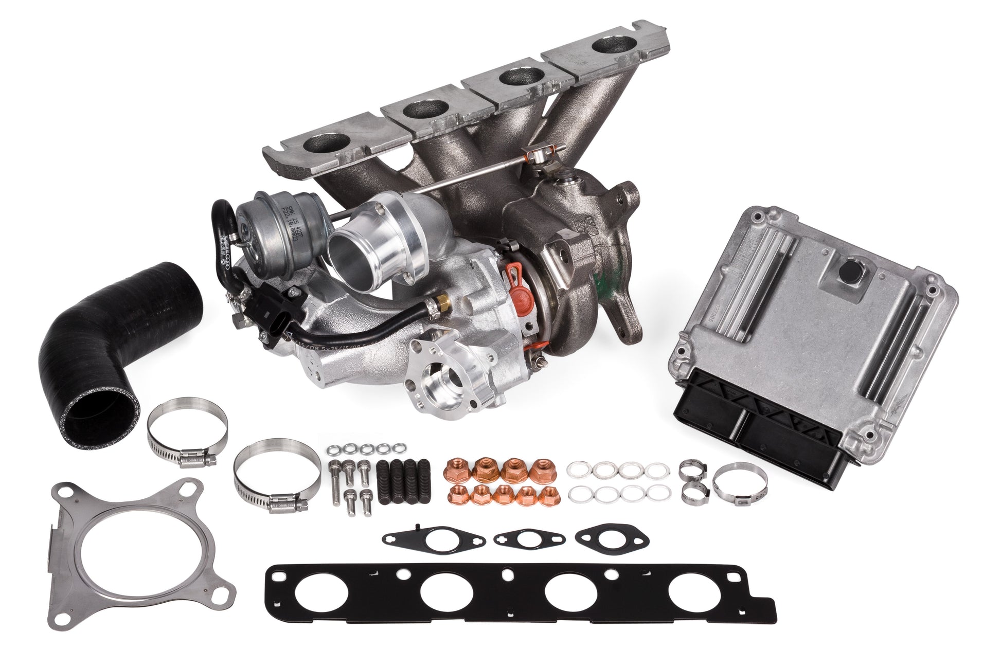 APR K04 ターボチャージャー システムは、ドロップイン ターボ アップグレードで、出力が劇的に向上します。このアップグレードと付属のソフトウェアを使用すると、K04 が標準装備されている Golf R、S3、TT-S などの高級車で高度にチューニングされた車両と同様の出力が期待できます。過渡応答は、ラグが最小限で、超高速です。パワーはすぐに立ち上がり、パワーバンド全体にわたって強力に維持されます。何よりも優れているのは、大型ターボチャージャー システムに比べて予算に優しいアップグレードとして設計されており、必要なハードウェアも最小限で済むことです。ターボチャージャー: APR は純正 Borg Warner 部品を使用します。システムの心臓部は Borg Warner K04-64 です。CNC 加工のビレット コンプレッサー ホイールとステンレス鋼のエキゾースト マニホールドは、工場出荷時のユニットに比べて、テクノロジー、パフォーマンス、信頼性の面で大幅に向上しています。既製の K04-64 ユニットとは異なり、APR のユニットはカスタマイズされています。純正ターボと同様に、DVをコンプレッサーカバーに統合しました。これにより、煩雑さと複雑さが解消されます。DVはターボに取り付けられているため、ブースト漏れの可能性のある複数の箇所が排除されます。また、ターボマフラーを取り外し、EZフローシリコンホースを追加しました。シンプルでクリーンな取り付けが可能です。10年以上にわたり数千台を販売してきた実績から、これらのターボはパワフルで信頼性が高いと自信を持って言えます。取り付けハードウェア:このシステムでは、一切の妥協をしていません。すべてのガスケット、ナット、ボルト、ワッシャー、スタッド、使い捨てクランプがこのアップグレードに含まれているため、取り付けは可能な限り簡単です。ソフトウェア:APRのステージ3 K04 ECUアップグレードがこの購入に含まれています。推奨および必須のハードウェア、出力数値、その他の詳細を含むソフトウェアの詳細については、該当する車両のECUアップグレードページをご覧ください。